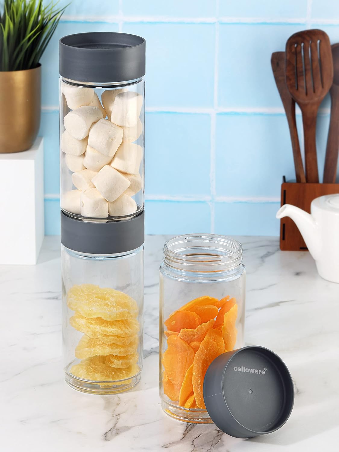Tags: Cello, Glass, glass air tight containers for kitchen storage, Jar, Modustack, of.., Set, Storage